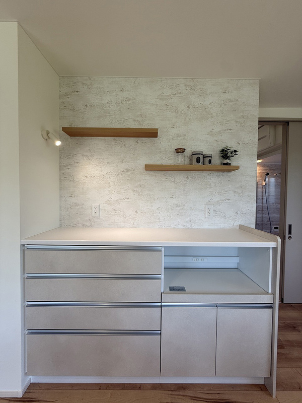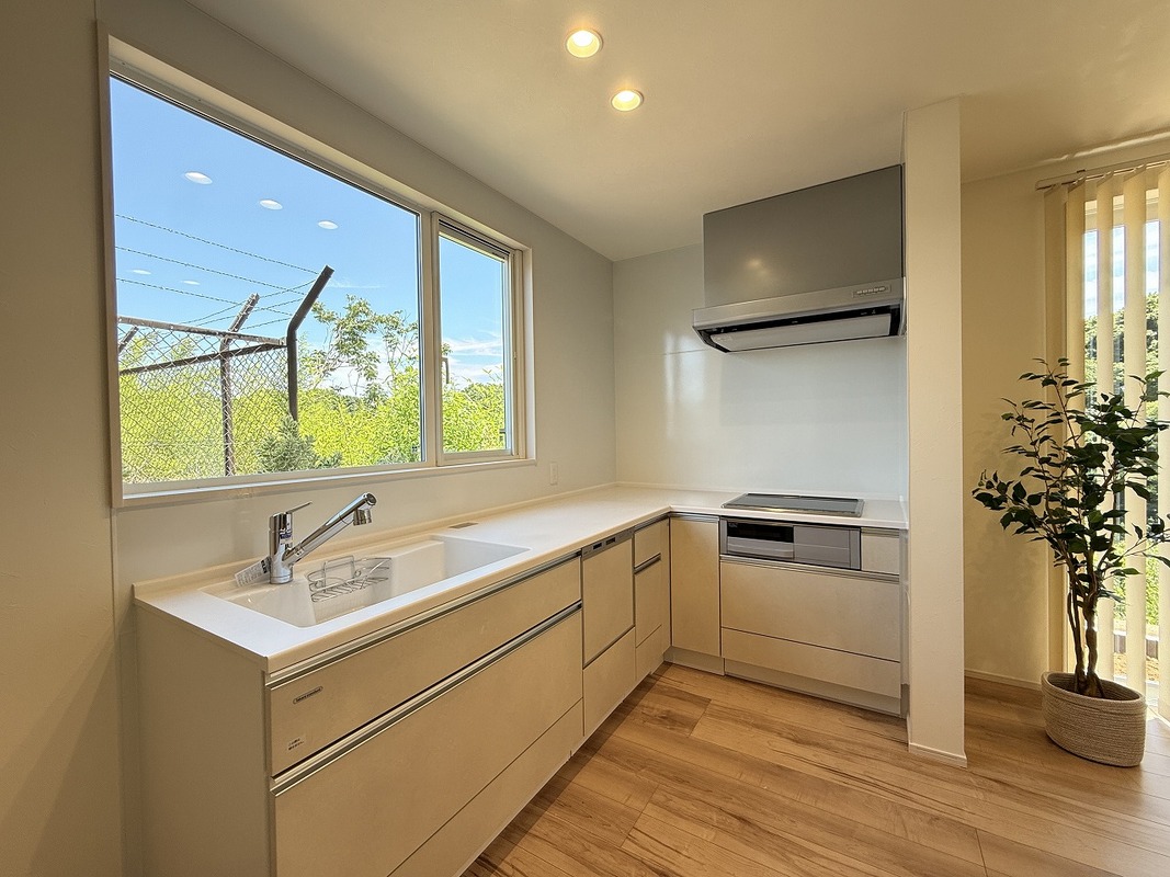 更にL字型キッチンにする事でリビングも広く感じ、あれば嬉しいを取り入れた間取りです。