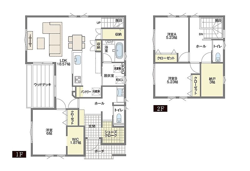 2階には洋室と納戸があり、子ども部屋や収納、趣味スペースとしても活用できます。