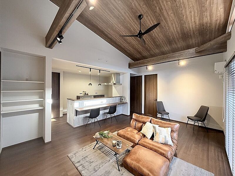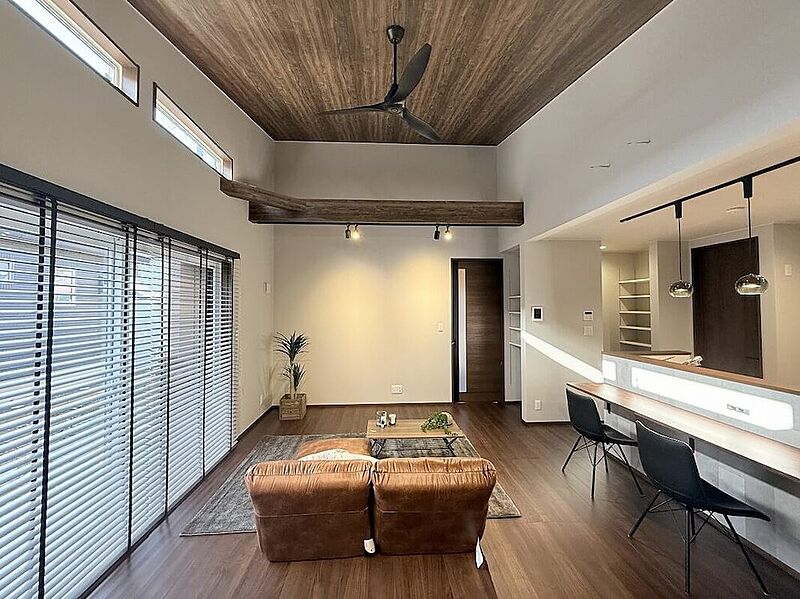 魅力1 リビングは平屋ならではの勾配天井で開放感抜群!