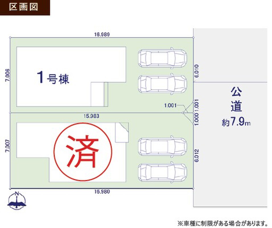 | 駐車場 | 2台 | 道路の幅員 | 道路幅:7.9m、アスファルト舗装、東側 約7.9m 公道 |