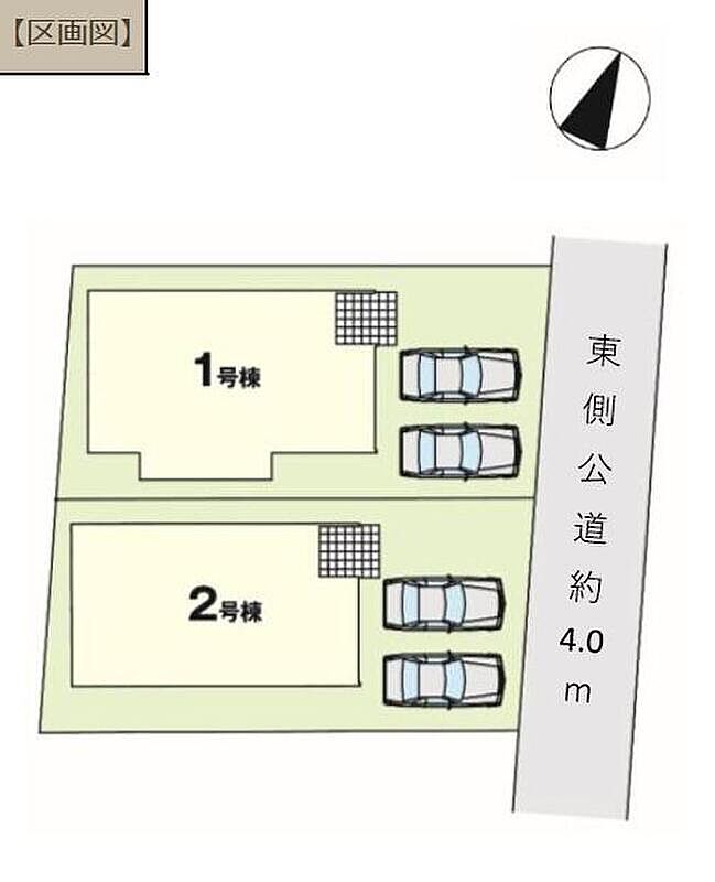 | 駐車場 | 2台 | 道路の幅員 | 道路幅:4m、アスファルト舗装、東 4m 公道 |