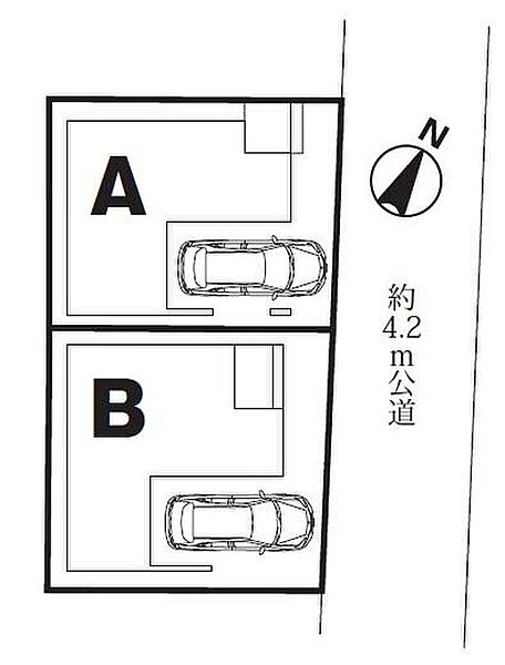 | 駐車場 | 1台 | 道路の幅員 | 道路幅:4.2m、アスファルト舗装、東側 約4.2m公道 |