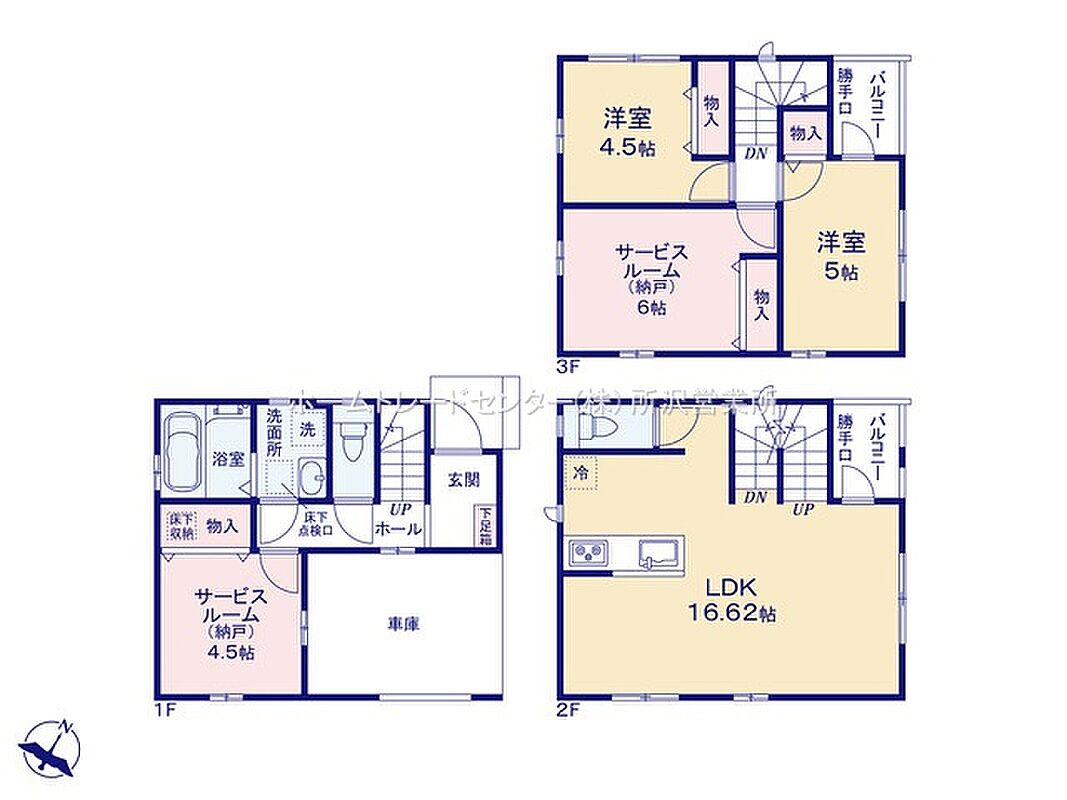 | 間取り | 2LDK+2S(納戸) | 建物構造 | 木造サイディング貼アスファルトシングル葺3階建 |