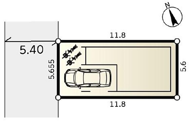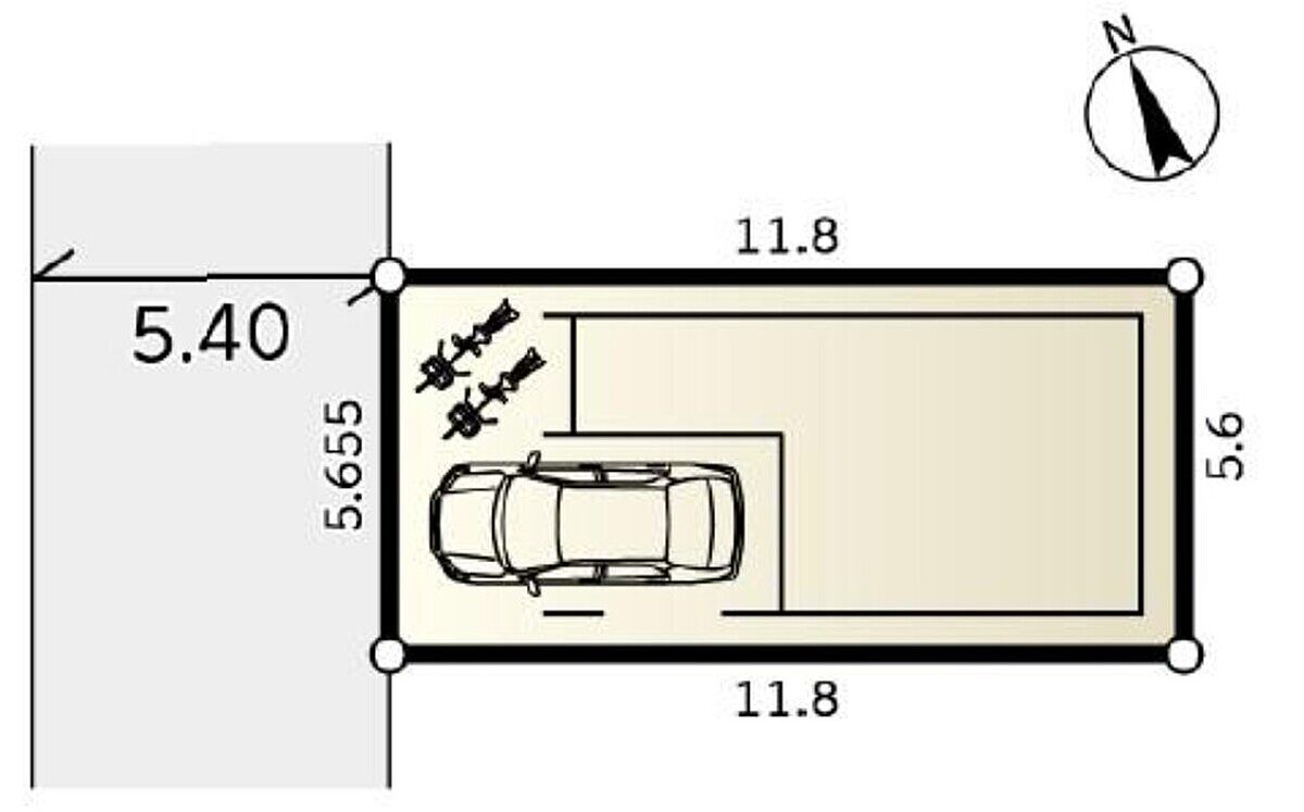 | 駐車場 | 1台 | 道路の幅員 | 道路幅:5.4m、アスファルト舗装、西 5.4m公道 |
