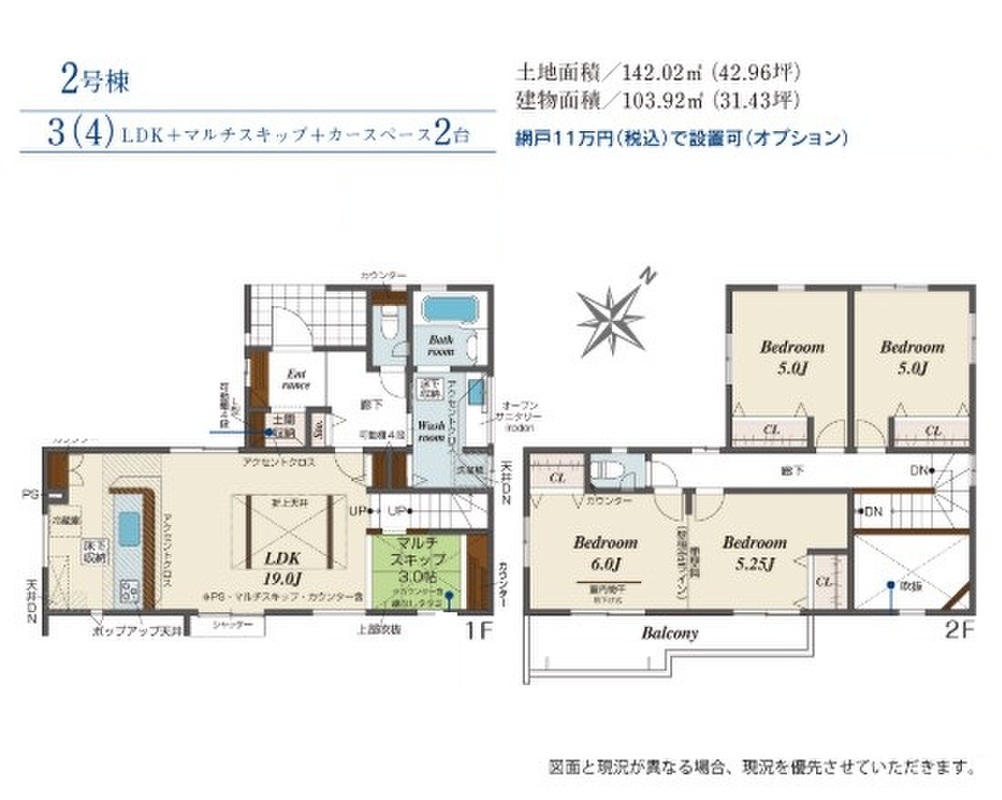 | 建物面積 | 103.92m2 | 土地面積 | 142.02m2 |