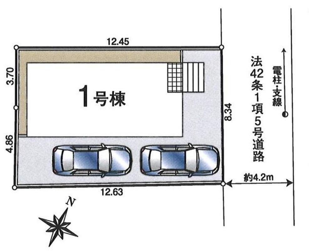 | 駐車場 | 2台(車種による) | 道路の幅員 | 道路幅:4.2m、アスファルト舗装、北東 4.2m 私道 |