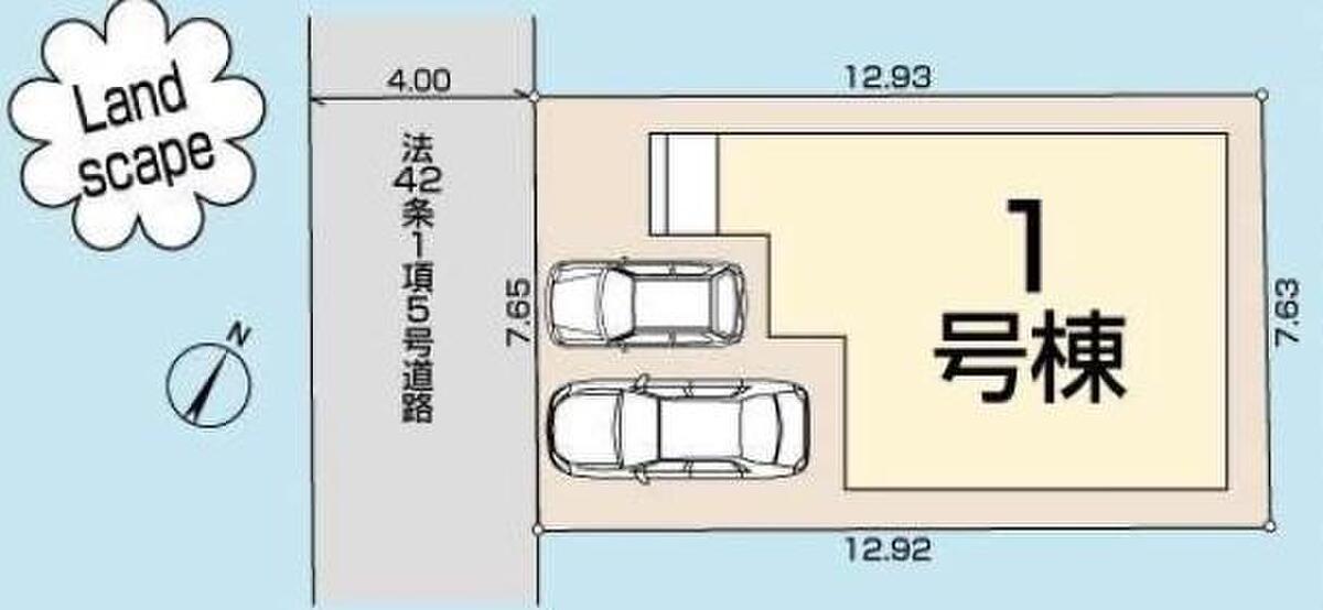 | 駐車場 | 2台(車種による) | 道路の幅員 | 道路幅:4m、アスファルト舗装、南西 4m 公道 |