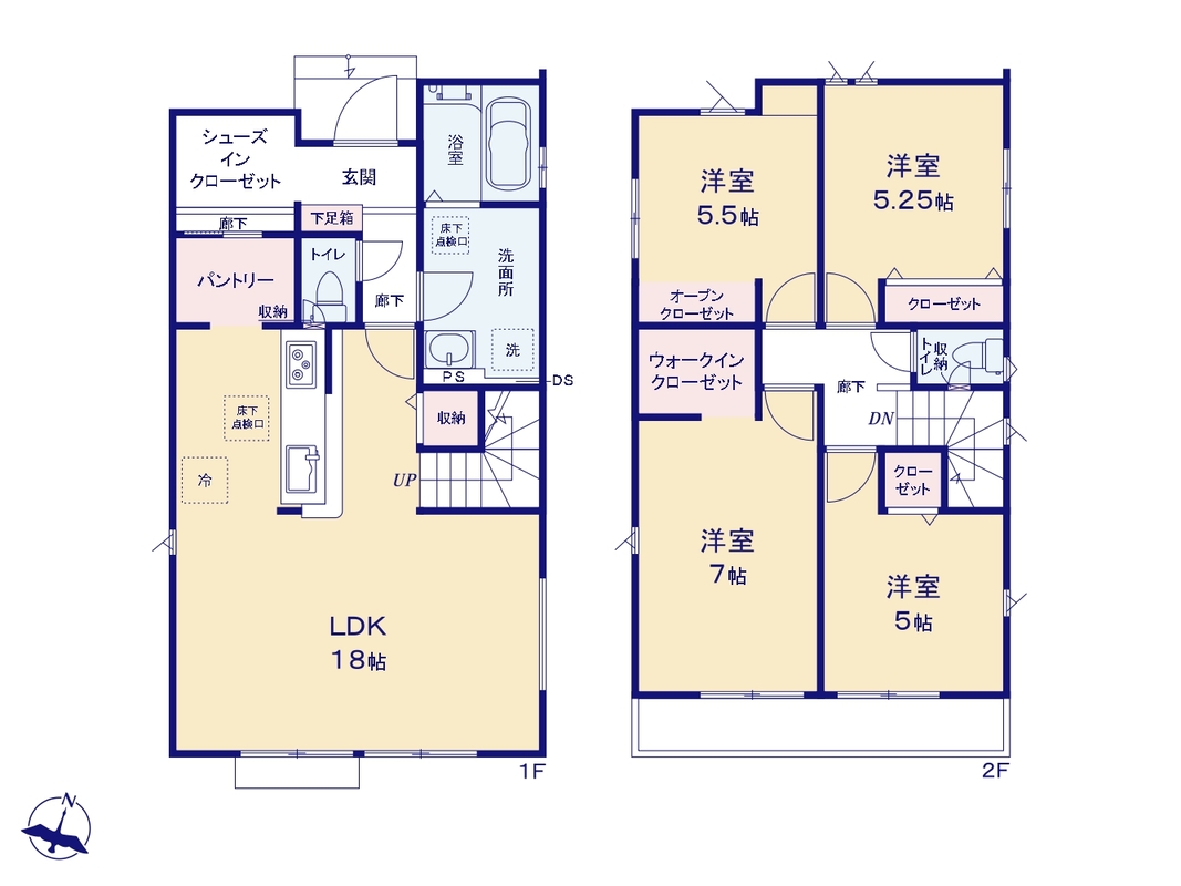 5号棟 間取り 4LDK 価格 4890万円 建物面積 101.85m2 土地面積 122.04m2 -