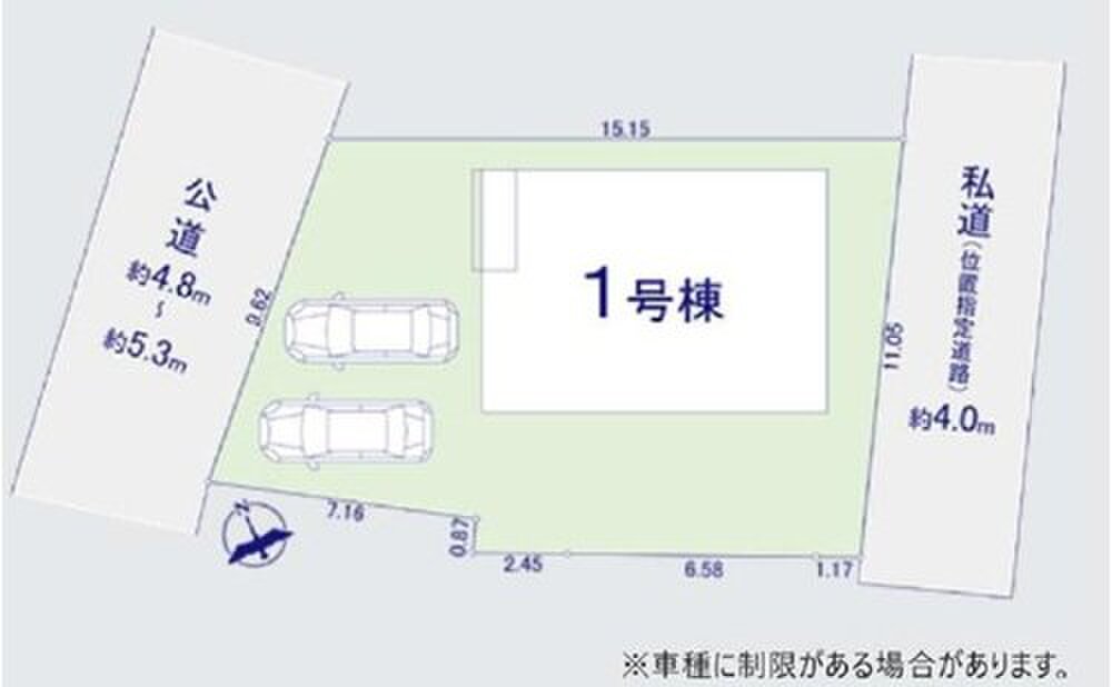 | 駐車場 | 2台 | 道路の幅員 | 道路幅:4m・4.8m、アスファルト舗装(他備考欄に記載 |