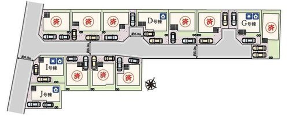 | 駐車場 | 2台(車種による) | 道路の幅員 | 道路幅:5m・6m、アスファルト舗装、南西6m 公道、分譲地内5m 私道、他備考欄参照 |