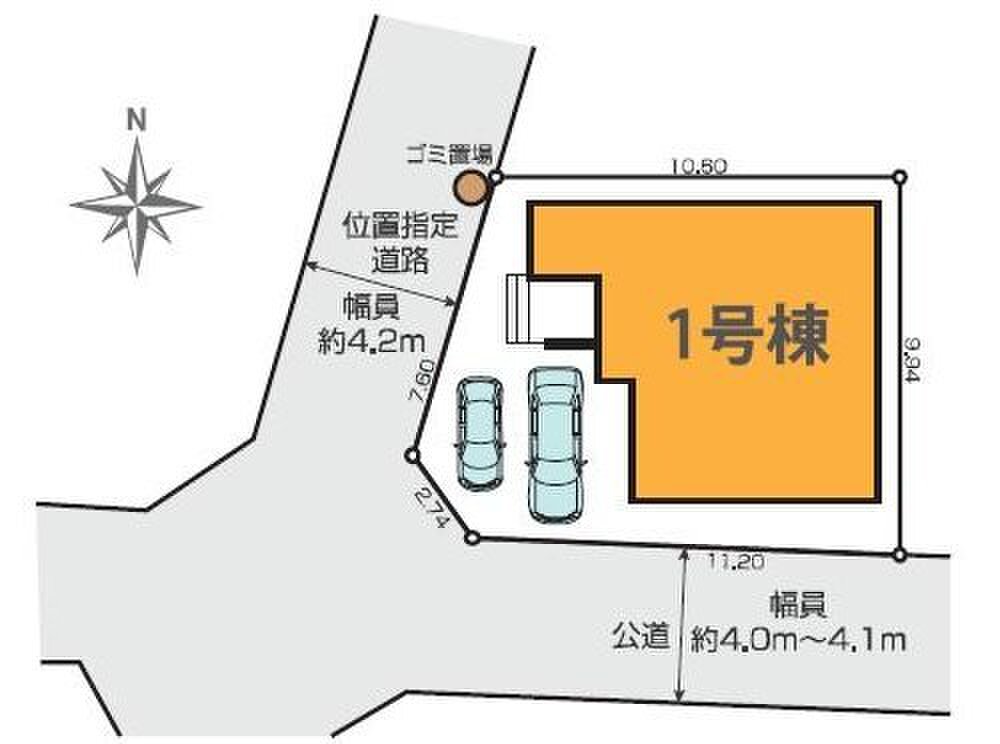 | 駐車場 | 2台(車種による) | 道路の幅員 | 道路幅:4m・4.2m、アスファルト舗装、西 4.2m 私道、南 4m 公道(他備考欄に記載) |
