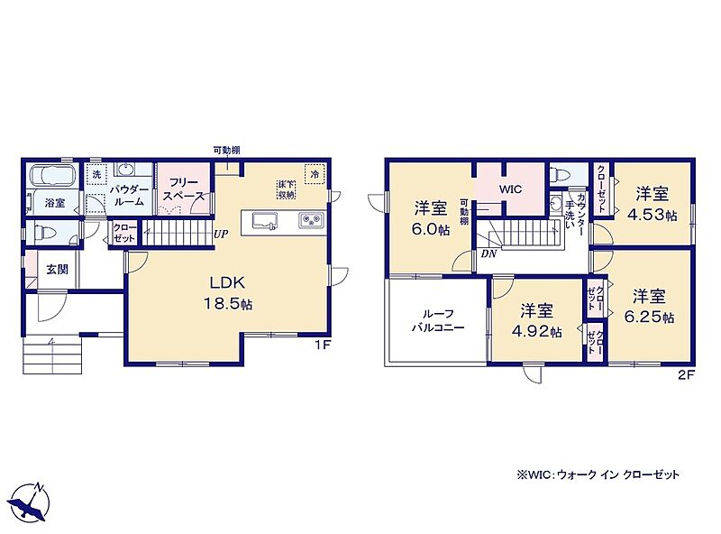 家族つながるリビングイン階段仕様の18.5帖LDK!折下天井のおしゃれな内装です♪多目的フリースペース、大型WIC付き収納豊富!長期優良住宅認定物件なので末永く安心してお住まいいただけます!