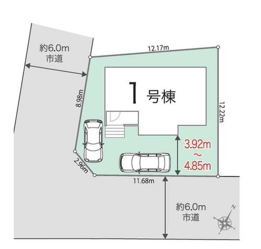 □南・西道路の角地!敷地45坪超!車2台