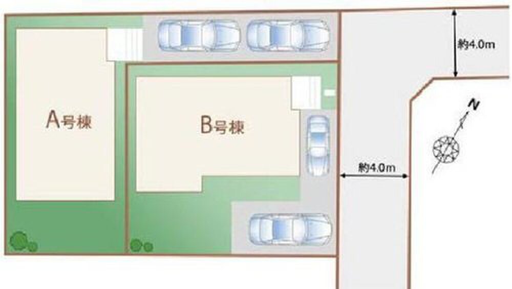 | 駐車場 | 2台(車種による) | 道路の幅員 | 道路幅:4m、アスファルト舗装、北東 4m 公道 |