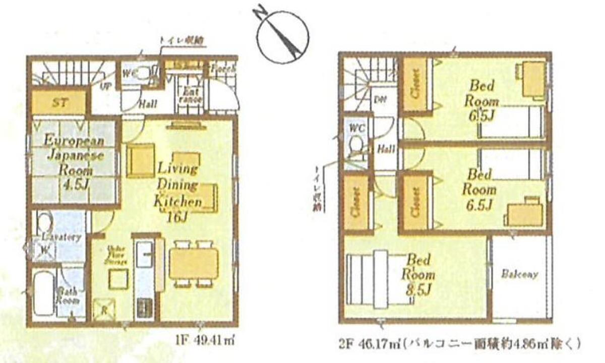 | 建物面積 | 94.76m2~95.58m2 | 土地面積 | 130.28m2~151.59m2 |