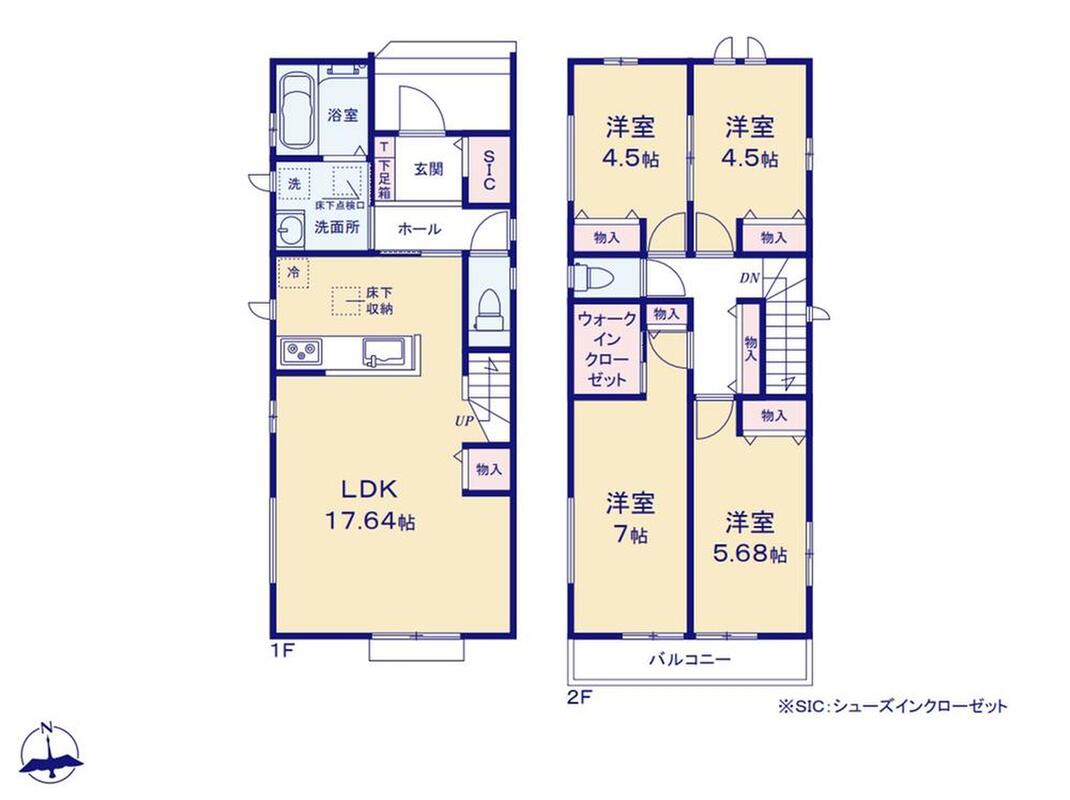 新築一戸建て 【飯田グループ物件】所沢市中新井3丁目 885番 全2棟 ※収納豊富な4LDK ハートフルタウン