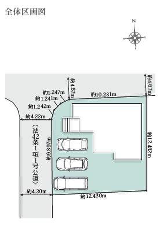 | 駐車場 | 3台 | 道路の幅員 | 道路幅:4.2m・4.6m、アスファルト舗装、北 4.67m 公道、西 4.22m 公道 |