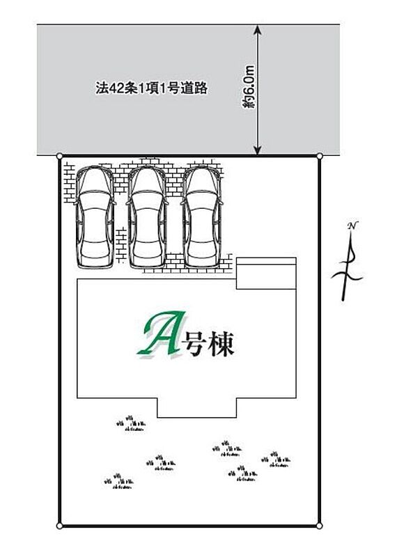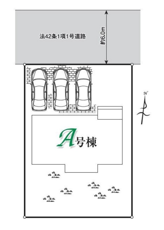 | 駐車場 | 3台 | 道路の幅員 | 道路幅:4m、アスファルト舗装、北側4m 公道 |