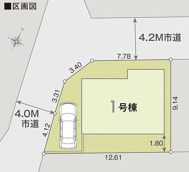 | 駐車場 | 1台 | 道路の幅員 | 道路幅:4m、アスファルト舗装、北側 4.2m 市道、西側 4m 市道 |