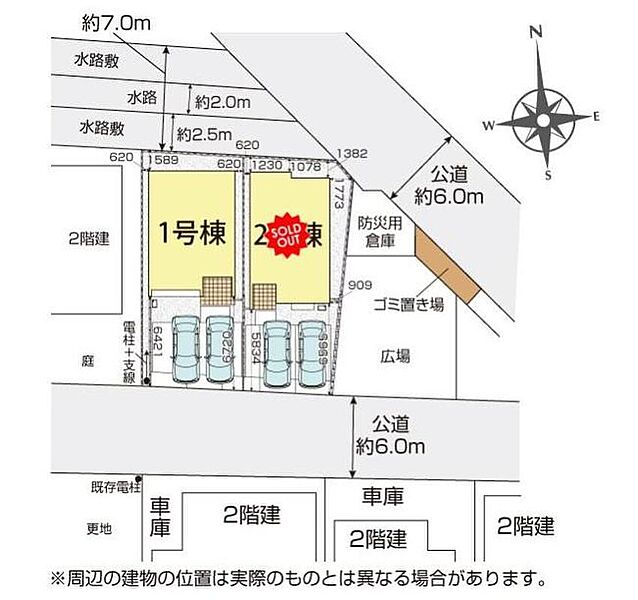 | 駐車場 | 2台 | 道路の幅員 | 道路幅:6m、アスファルト舗装、南6.0m 公道 |