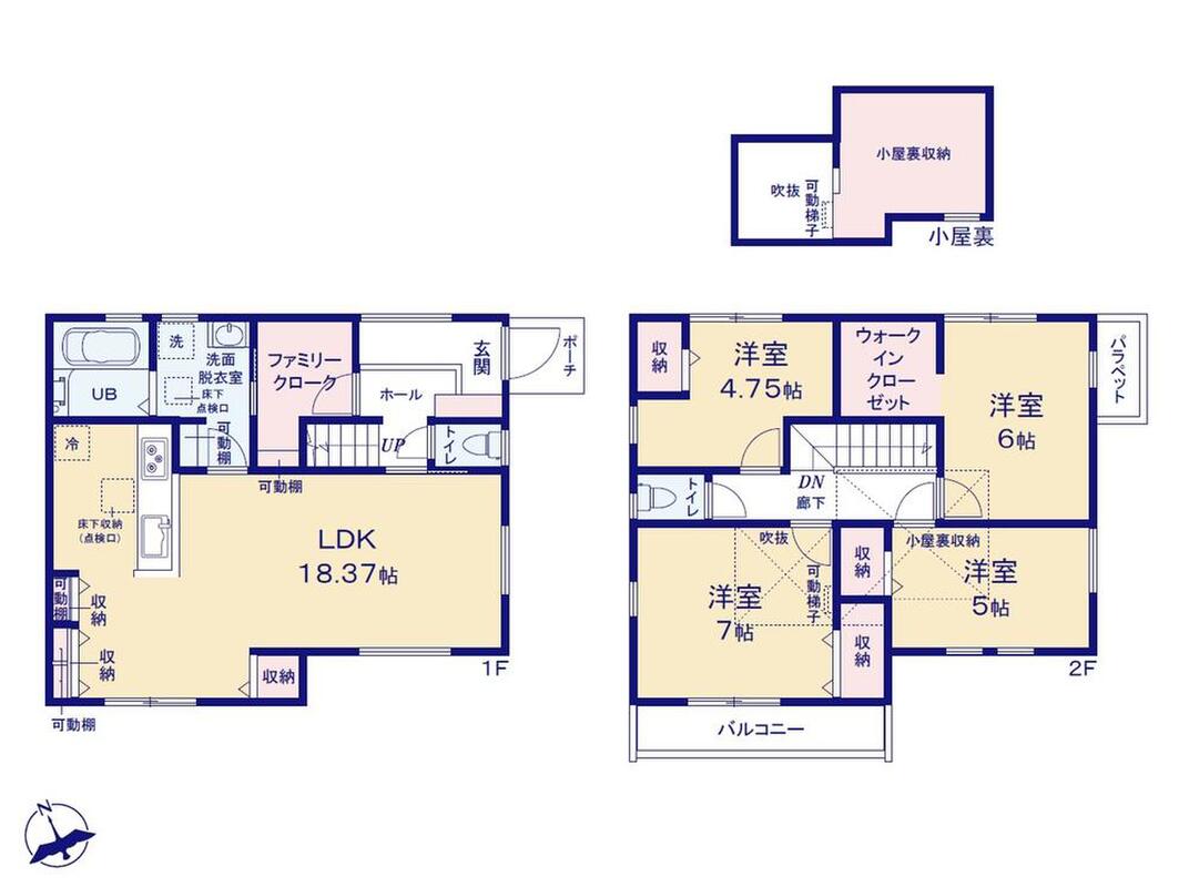 5号棟 間取り 4LDK 価格 4590万円 建物面積 102.86m2 土地面積 114.63m2 -