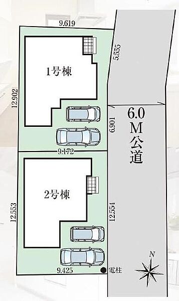 | 駐車場 | 2台(車種による) | 道路の幅員 | 道路幅:6m、アスファルト舗装、東 6m 公道 |
