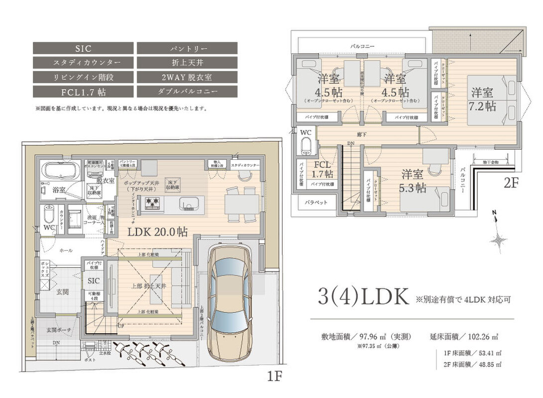 | 間取り | 3LDK+FCL1.7帖 (※別途有償にて4LDK対応可) | 建物構造 | 木造2階建 |