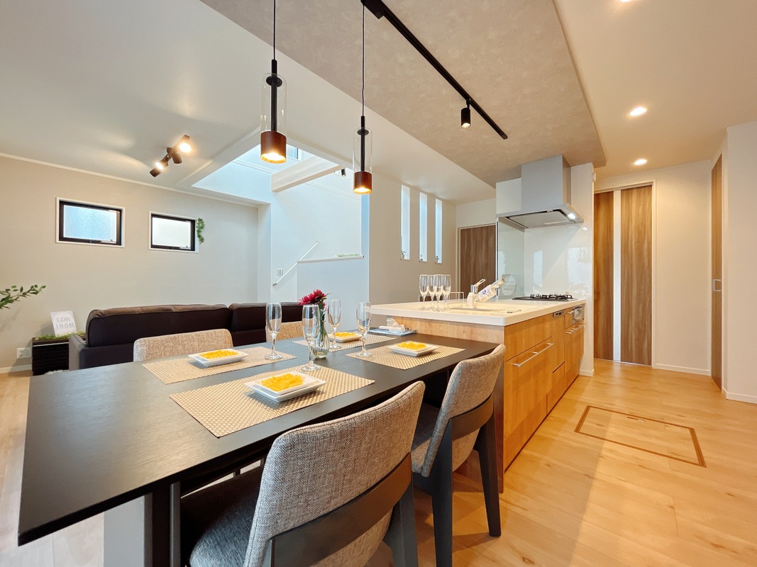 ―「住みやすさ」を追求した動線設計― ■脱衣室・洗面コーナー 働くパパママを中心に人気の高まる2WAY設計。 水まわりの動線がスムーズで時短家事が叶います。 ガス栓付で衣類乾燥機の設置も楽々♪ ■SIC・リネン庫・パントリーなど充実の収納スペース 物の種類や使用頻度別に定位置管理がしやすい為、 使う時も片付ける時もストレスフリーに! ■ご家族分のアウター類もスッキリ収まるFCL かさばるペットボトルの保管庫や書斎としても◎ ■20帖の広々LDK 会話の弾むペニンシュラキッチン(食洗機・浄水器付) 触れ合いを大切にするリビングイン階段 お料理中もそばで宿題を見守れるスタディカウンター、など |