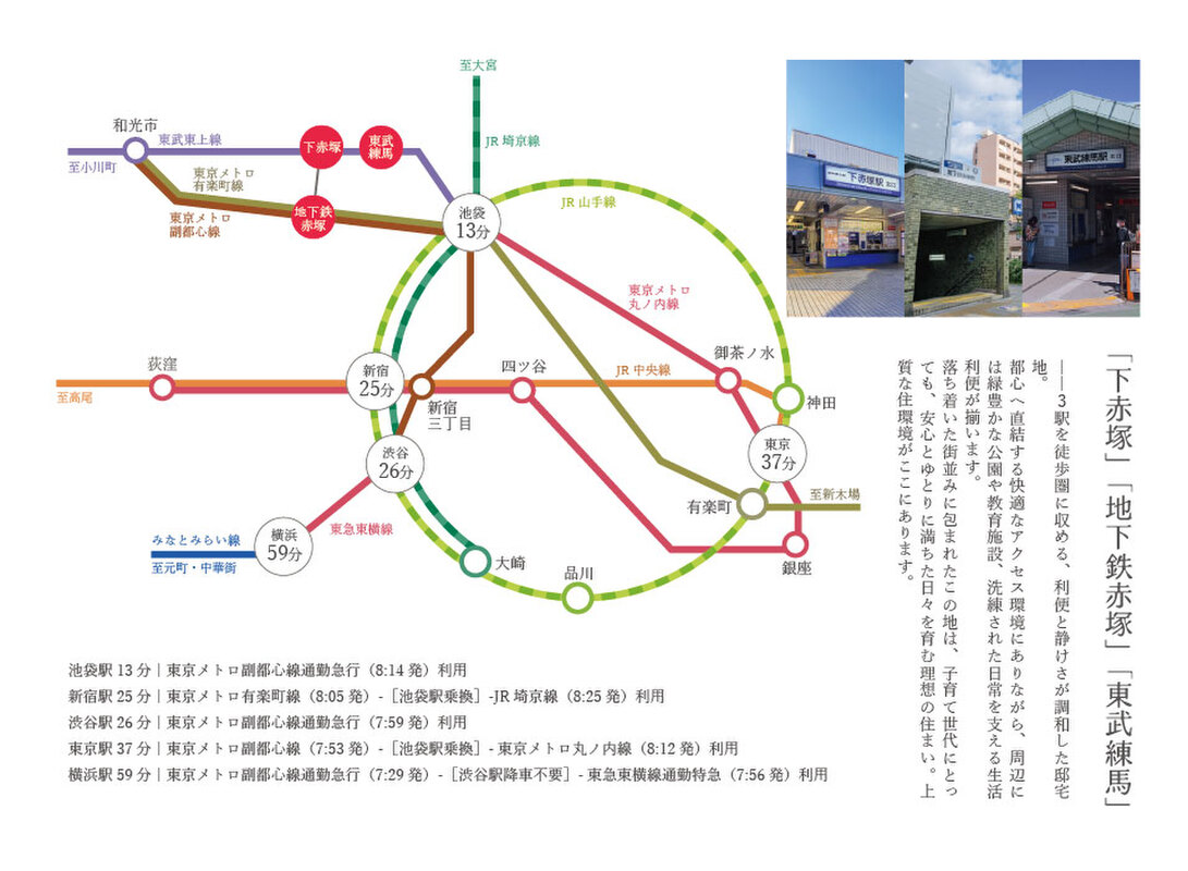 - 東武東上線「下赤塚」駅 徒歩8分東京メトロ有楽町線「地下鉄赤塚」駅 徒歩8分東武東上線「東武練馬」駅 徒歩12分