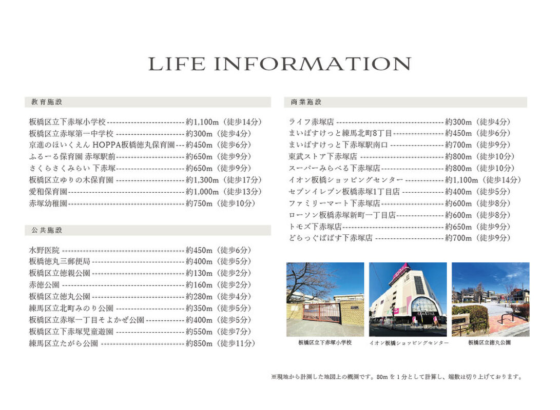 東武東上線「下赤塚」駅 徒歩8分 東京メトロ有楽町線「地下鉄赤塚」駅 徒歩8分 東武東上線「東武練馬」駅 徒歩12分 |