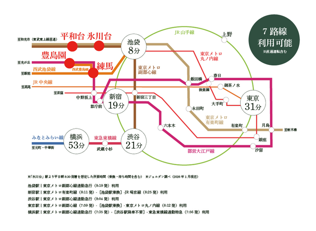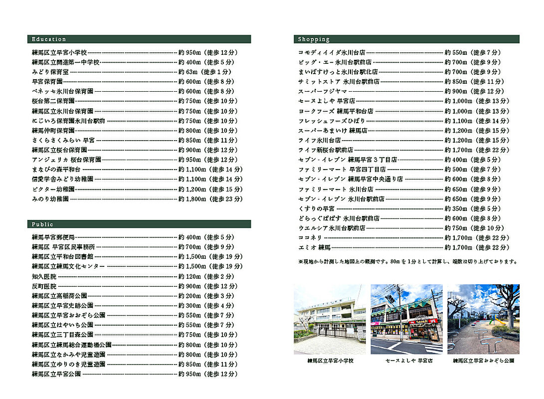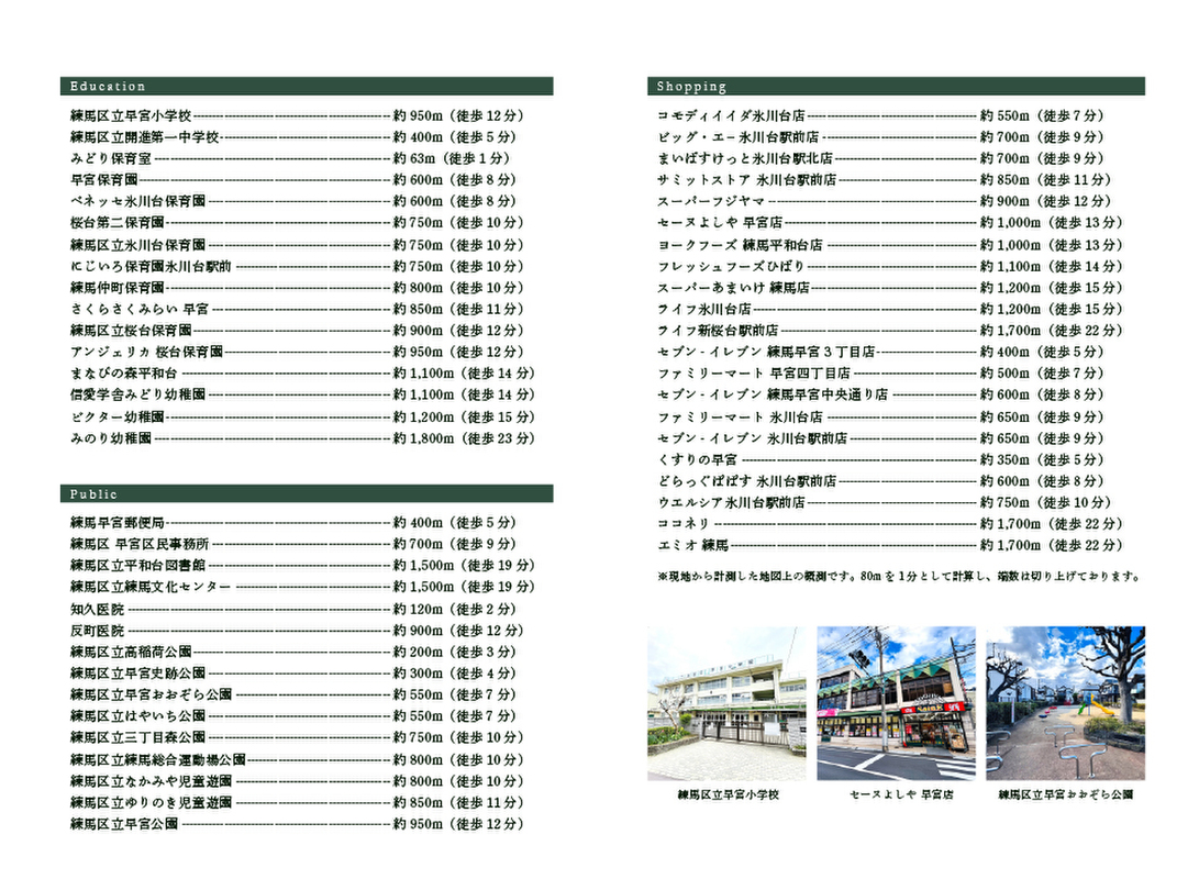 - 東京メトロ有楽町線「氷川台」駅 徒歩8分都営大江戸線「豊島園」駅 徒歩17分西武池袋線「練馬」駅 徒歩20分