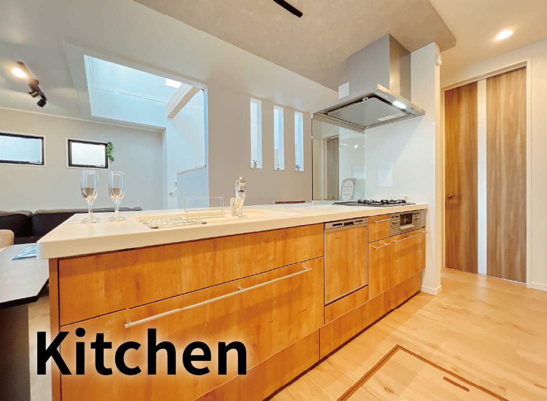 【前面収納付ペニンシュラキッチンを中心とした回遊動線で家事効率UP!】