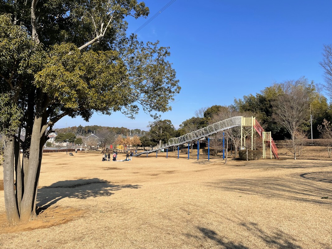 大きなすべり台があるひろびろとした大型公園