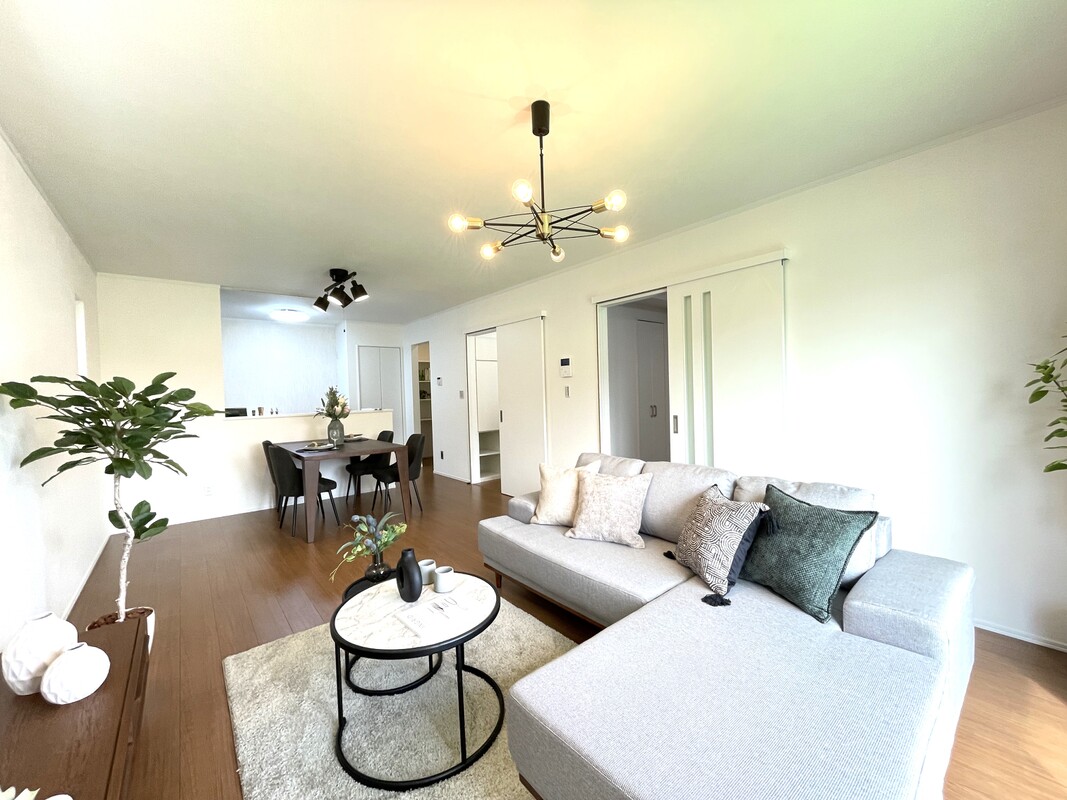 ナチュラルな色合いに包まれた、17帖のゆとりあるLDK