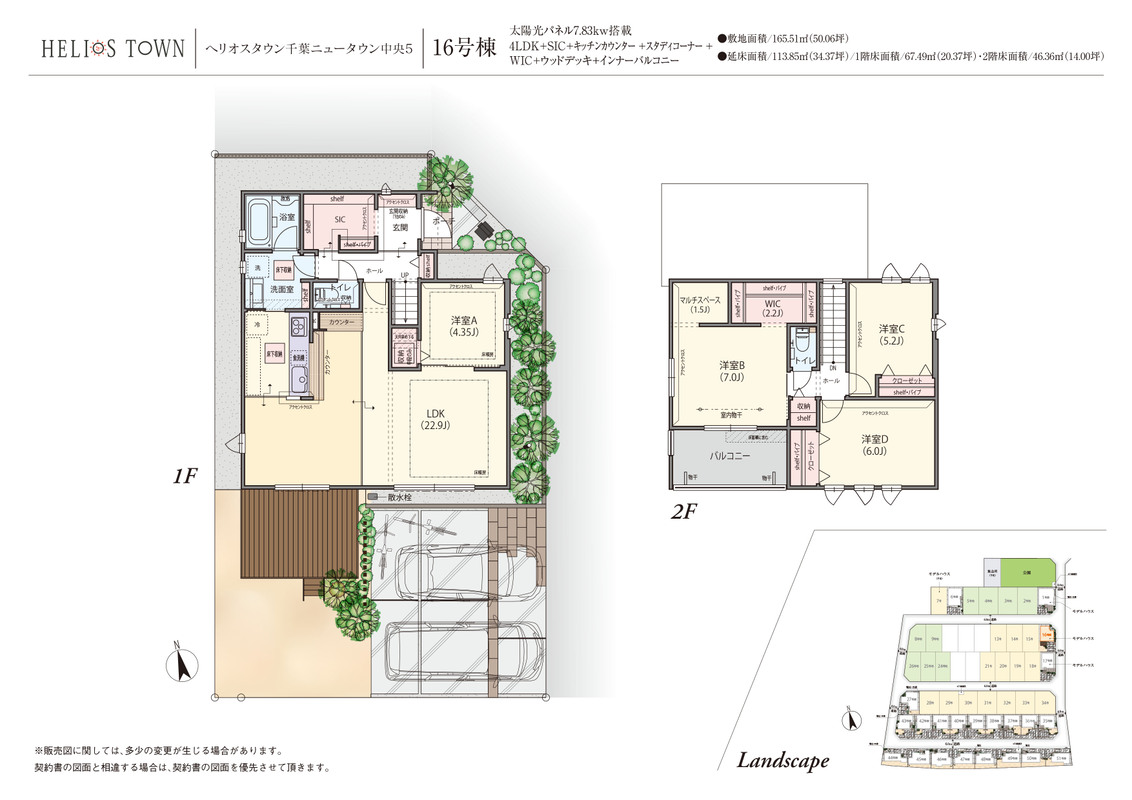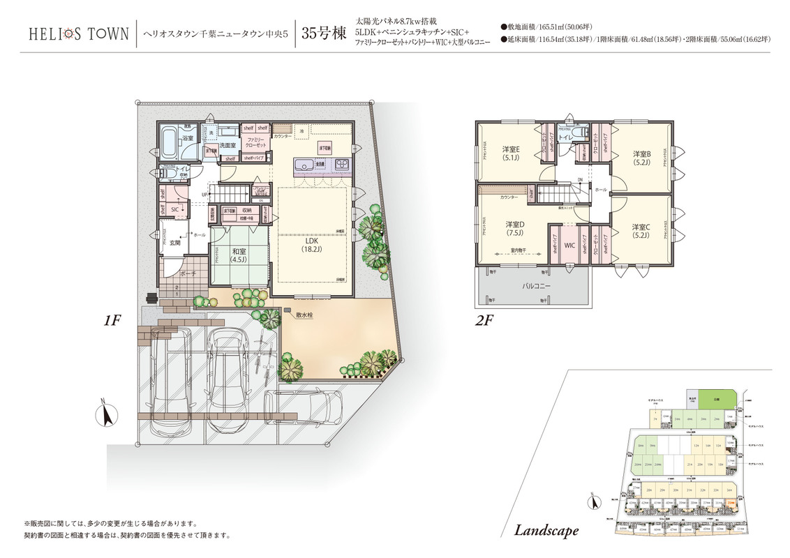 | 建物面積 | 80.53m2(45号棟)~116.54m2(35号棟) | 土地面積 | 165.50m2(4区画)~168.15m2(5区画) |