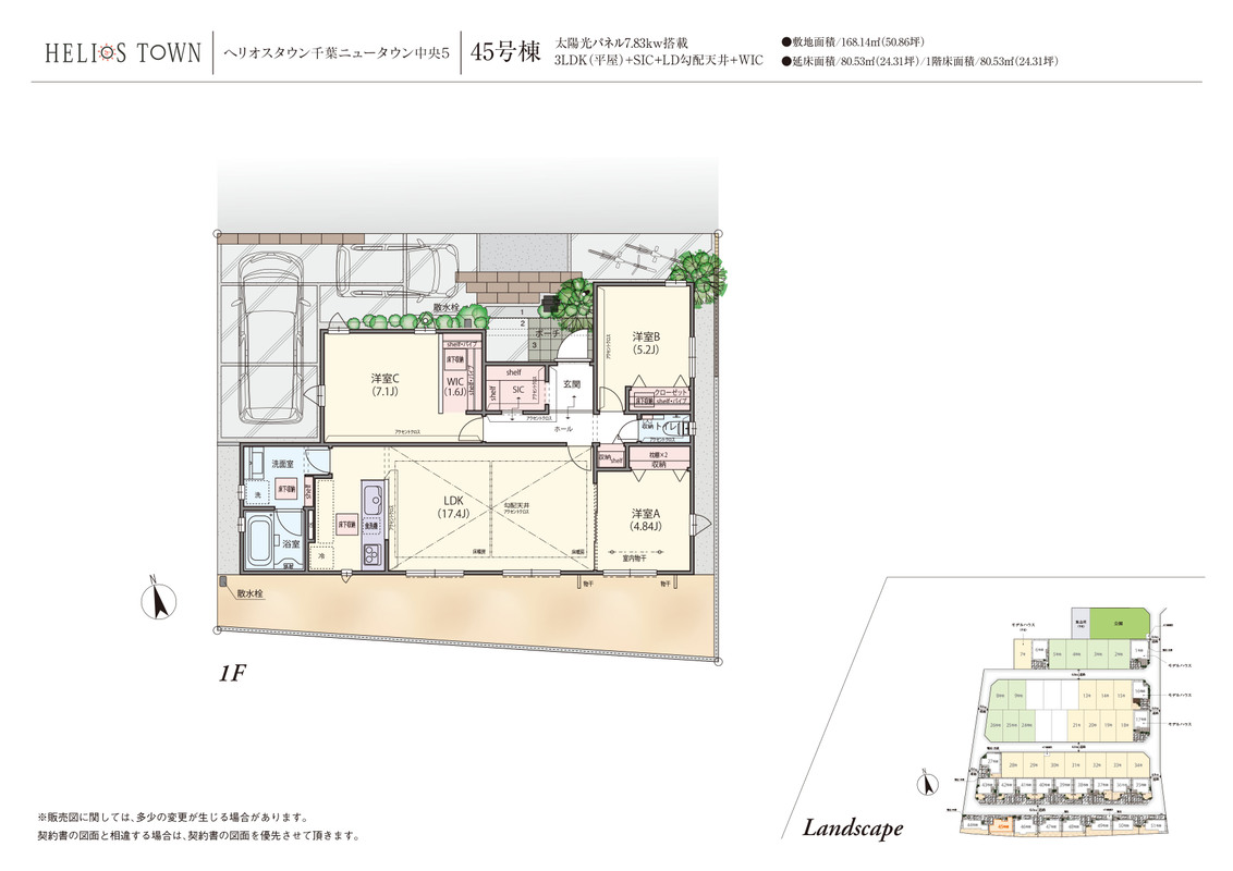 45号棟 間取り 3LDK 価格 3490万円 建物面積 80.53m2 土地面積 168.14m2 -