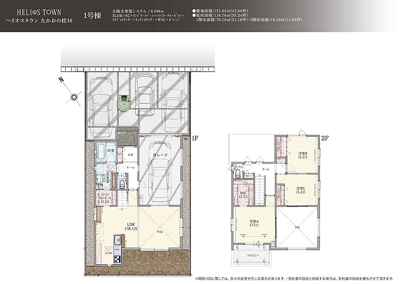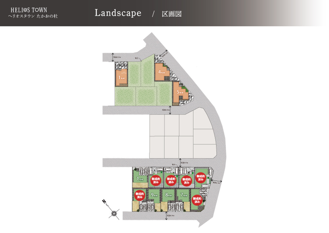 | 建物面積 | 83.01m2(25.06坪、4号棟)~116.76m2(35.24坪、1号棟) | 土地面積 | 151.02m2(45.68坪、1号棟)~184.74m2(55.88坪、5号棟) |