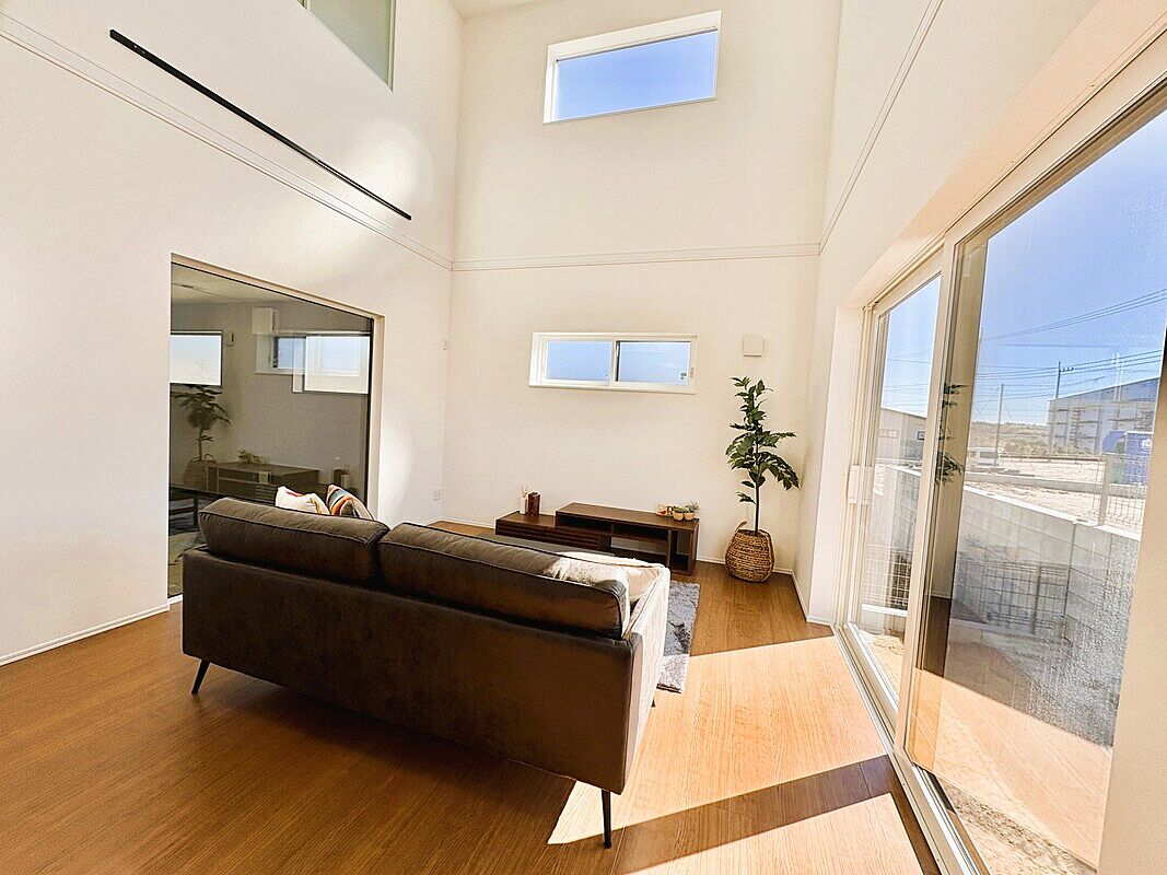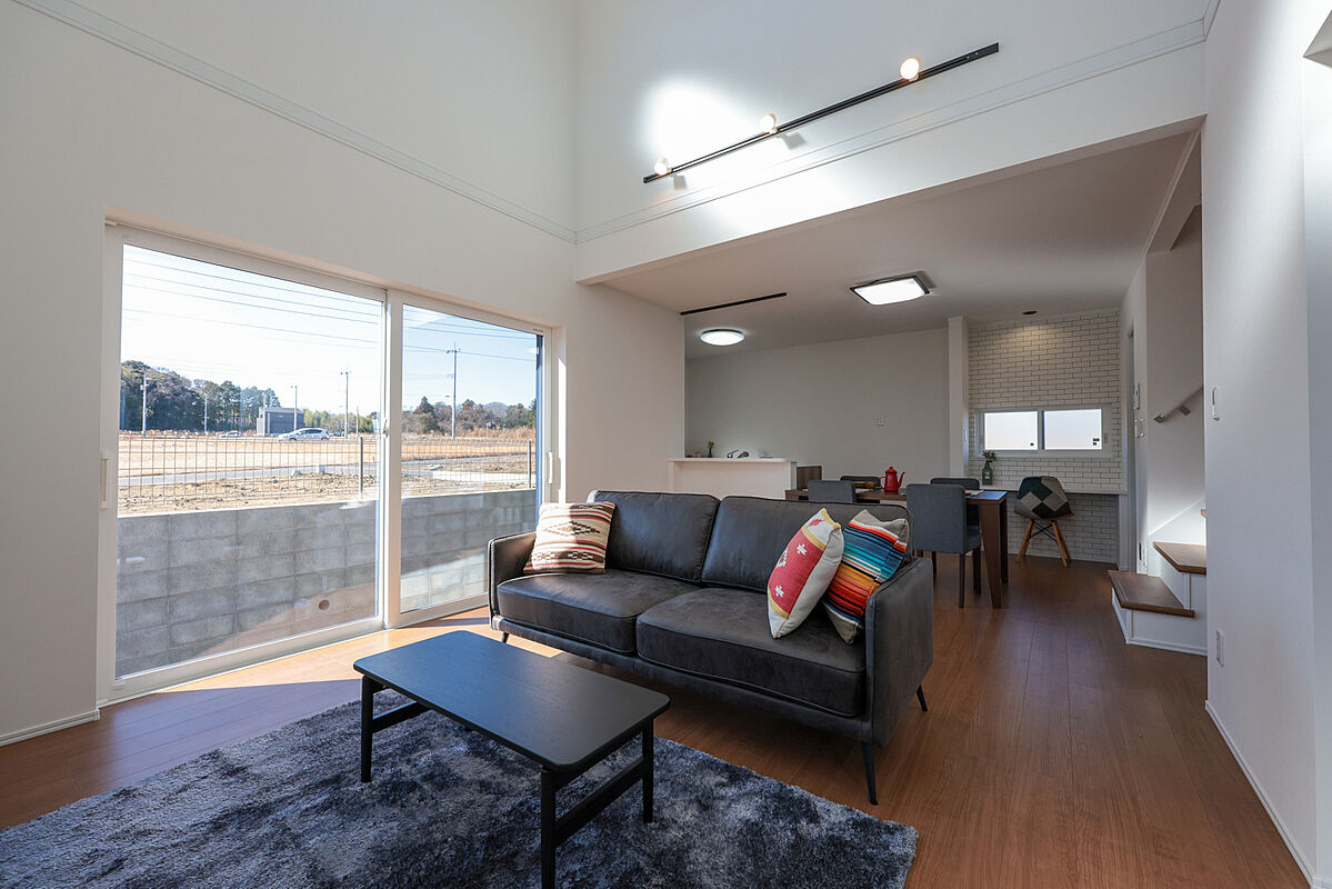 美しく整備された街並みに誕生した、開放感抜群の住まい。吹き抜けから差し込む陽光がリビングを心地よく包み込みます。平屋・2階建て、それぞれのライフスタイルに合わせたゆとりある空間を、ぜひ現地で体感してく