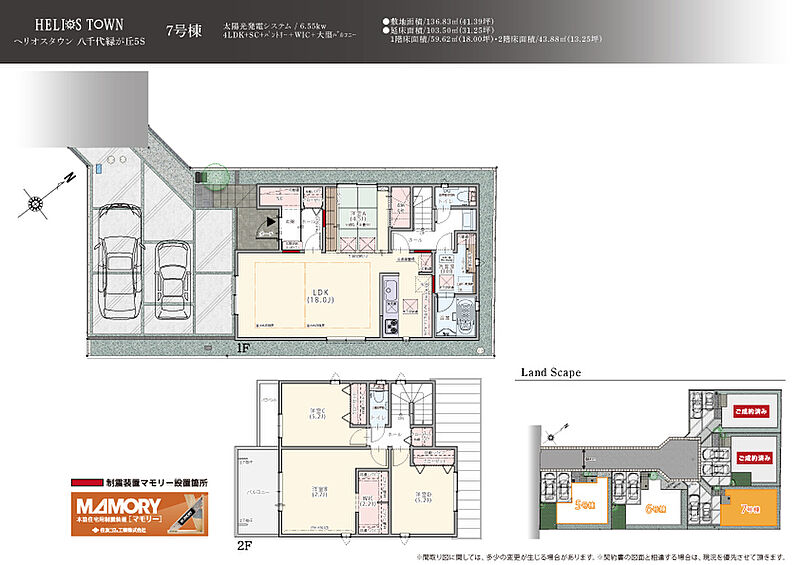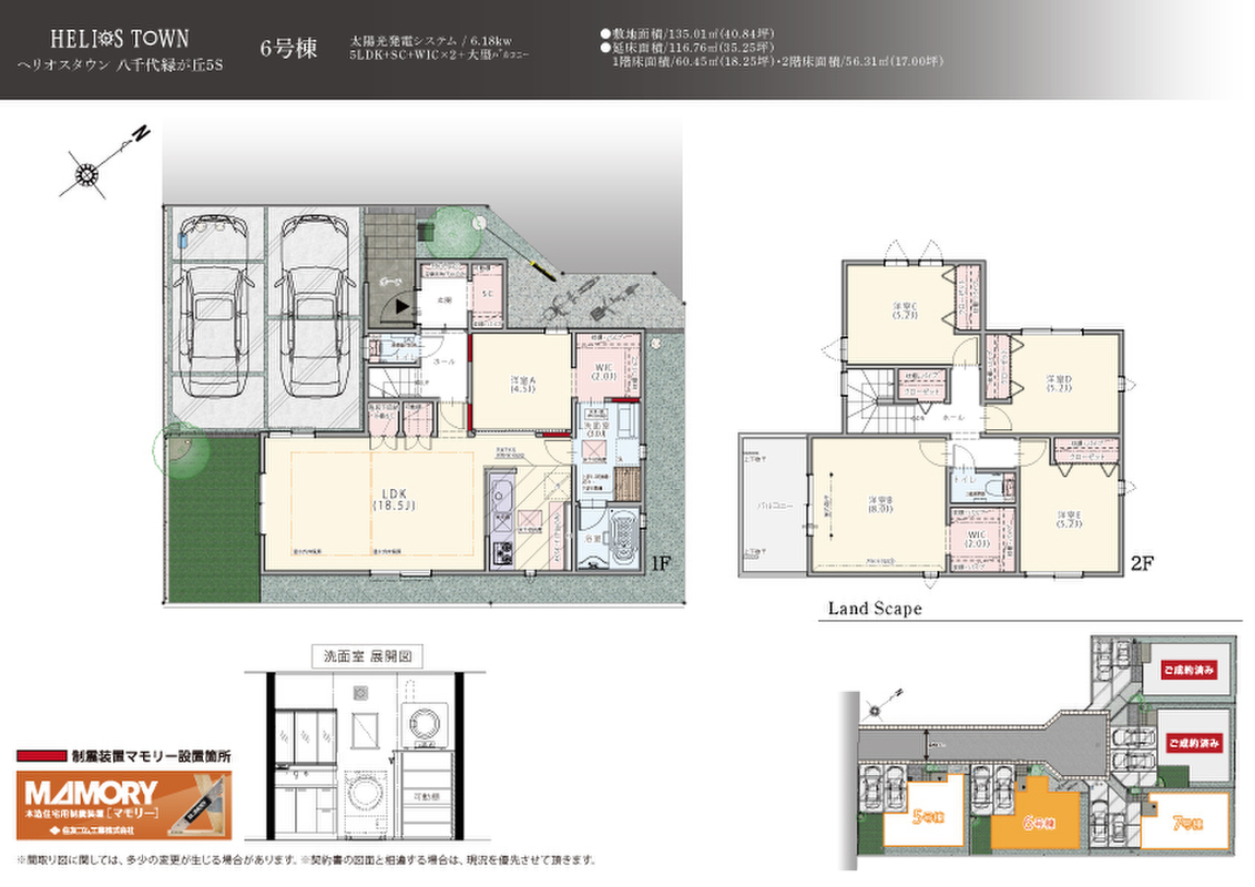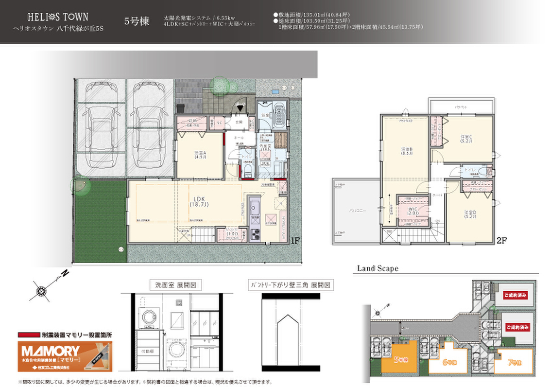 | 建物面積 | 103.50m2(5・7号棟)~116.76m2(6号棟) | 土地面積 | 135.01m2(5・6号棟)~136.83m2(7号棟) |