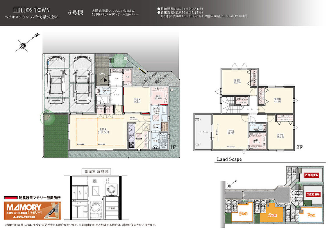 | 建物面積 | 103.50m2(5号棟)~116.76m2(6号棟) | 土地面積 | 135.01m2(5・6号棟) |