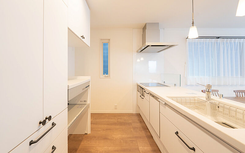 キッチン、ダイニングと一直線につながっており、配膳もスムーズです