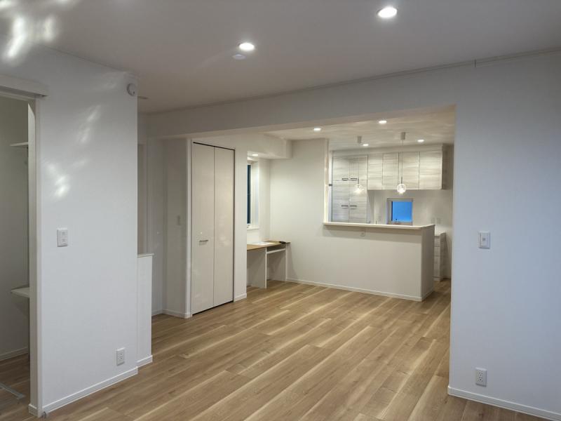 ナチュラルで温かみのあるLDKには、大人気のヌックスペースを完備♪お子様スペースにも大人の小部屋にも、何でも使える便利スペースです。他にも、洗面脱衣別・1階W.I.Cなど人気のアイデアが満載の明るい木造住宅を、是非ご体感ください。