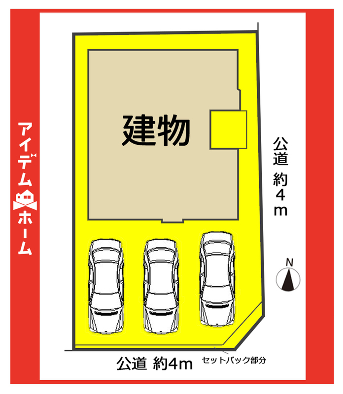 | 駐車場 | 3台 | 道路の幅員 | 南側4m(公道)、東側4m(公道) |