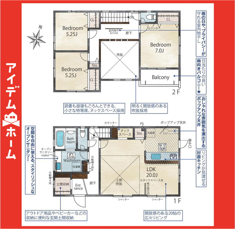 【充実】食洗機、浴室乾燥機、駐車2台、マルチスキップ、WIC、吹抜、室内物干し、ワイドバルコニー
