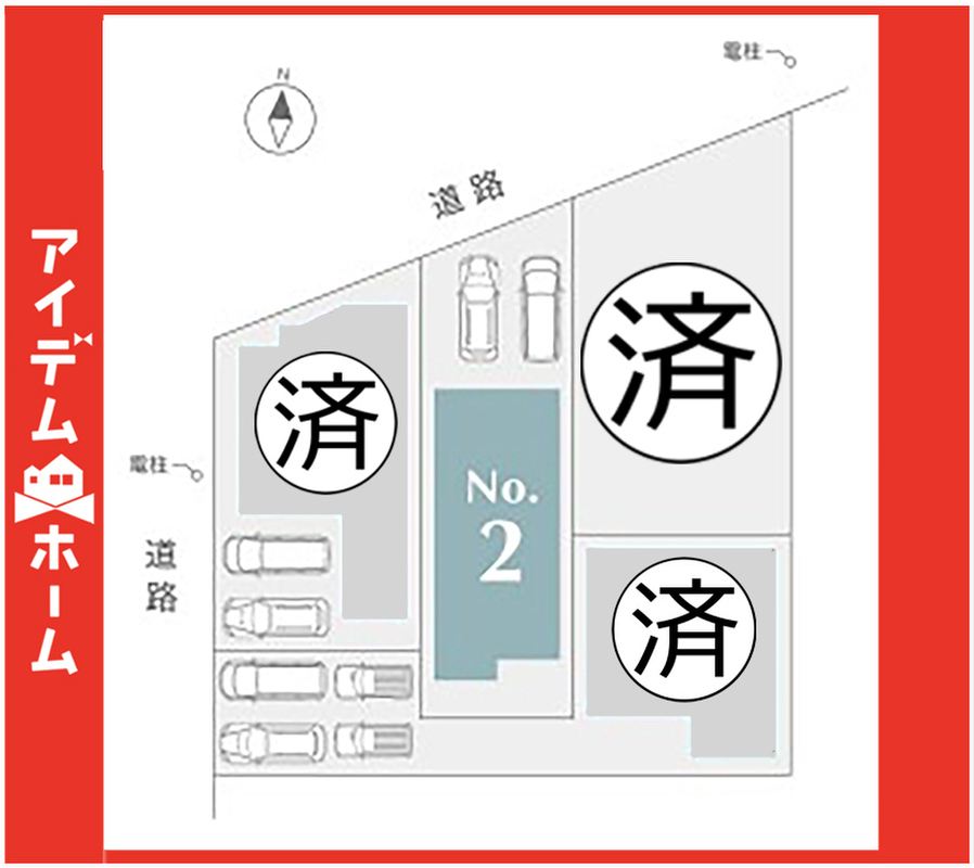 | 駐車場 | 2台 | 道路の幅員 | 西側4.9m、北側8.1m(公道) |