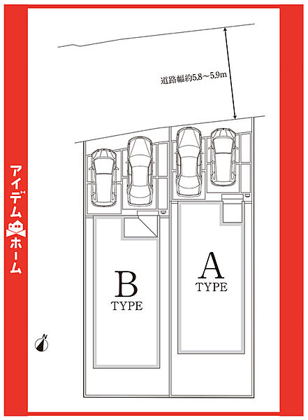 | 駐車場 | 2台 | 道路の幅員 | 北側5.8m(公道) |