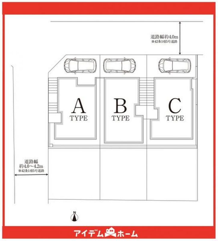 | 駐車場 | 1台 | 道路の幅員 | 北側4.0m、西側4.0~4.2m(公道) |
