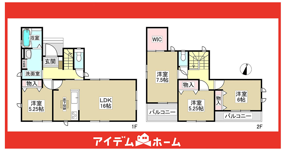 1階に洋室のついた4LDK間取!南向きの主寝室には収納に便利なWIC完備!