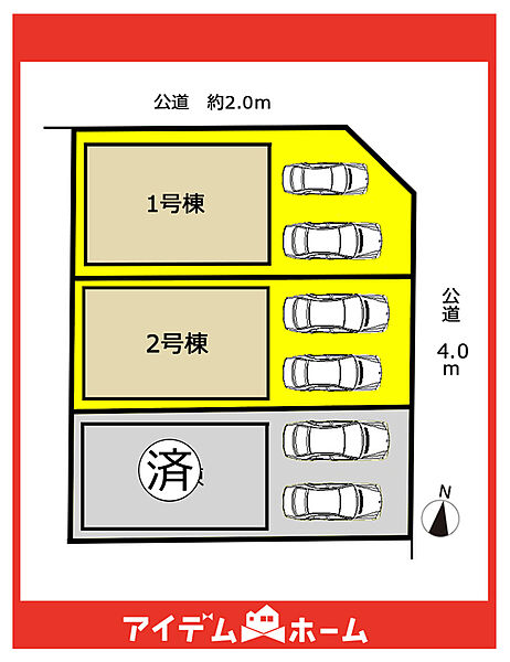 | 駐車場 | 2台 | 道路の幅員 | 東側4m(公道) |