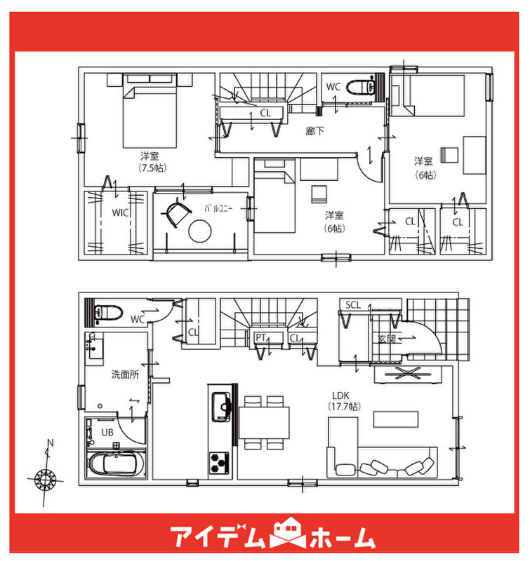 - ※完成予想図やCG合成画像は、門塀・植栽・庭・外観等、実際とは多少異なる場合があります。